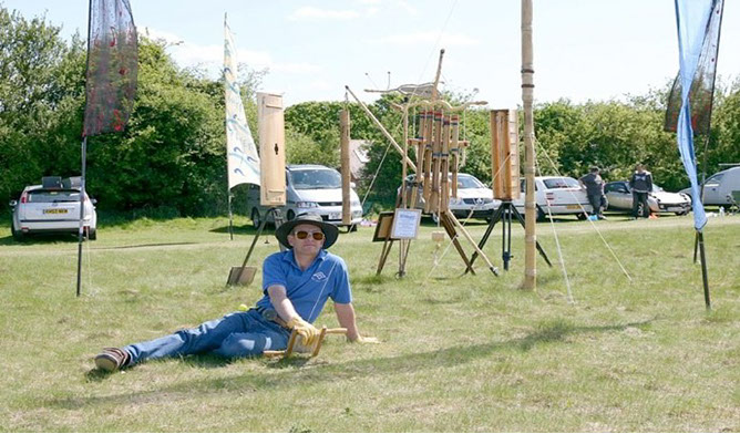 Nowadays I visit as many kite festivals and other events as I can with my display of kites and instruments under the name of Resonance Aeolian. My Resonance Aeolian display, pictures of which you can see at another part of the site, has grown rapidly over the past few years as I have become more proficient at making and trying out a few new things. There are always new ideas to try out. Some work well and others always need a bit of TLC or ‘fine tuning’, not always turning out as expected. Help can come from many areas and friends, but my greatest thanks needs to go to Robert Valkenburg from Holland. His own Wind Gallery Aeolian Display is really what started me on this path and we have had some great talks over the years on all things Aeolian. He makes wonderful, unique instruments and kinetic sculptures for display and for sale. Some of his greatest designs of instruments (mainly the Aeolian Harps) form the core of my display. Whenever possible, we combine specific parts of our instrument displays at events, but also discuss future projects, designs and ideas on instruments and how best to introduce and display our passion to others.